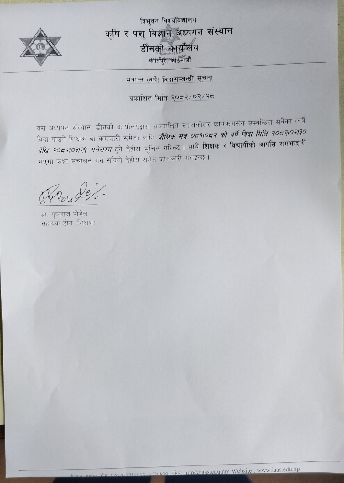 सहायक डीन छनौट समितिको अन्यन्त जरुरी सूचना ।