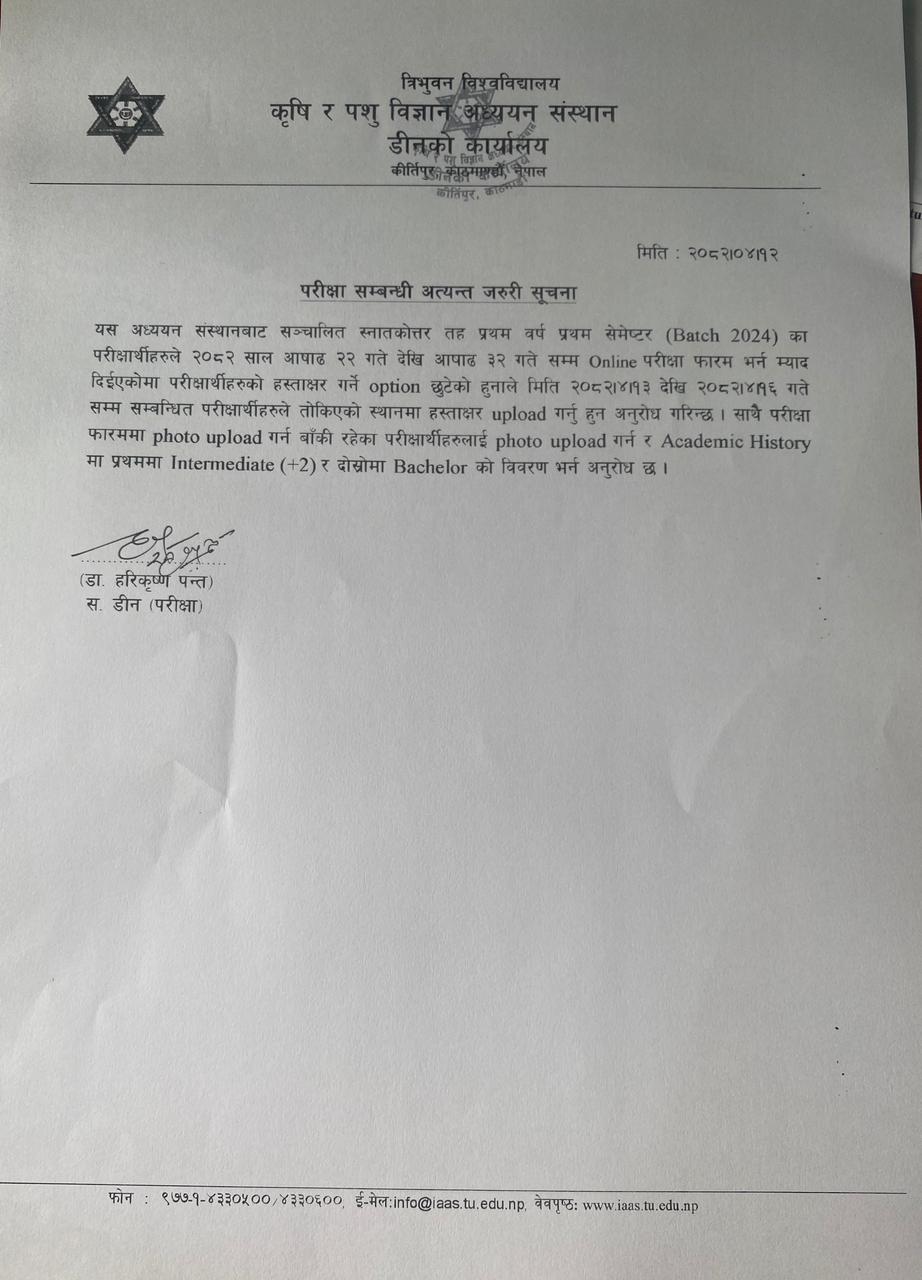 सहायक डीन छनौट समितिको अन्यन्त जरुरी सूचना ।
